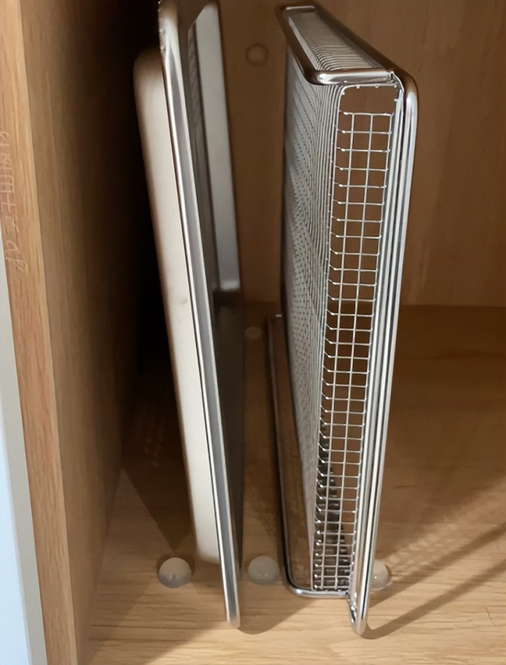 除了用来防撞之外,还可以把它贴在柜子里面,就变成了格挡,可以用来收纳厨房里面的各种盘子。