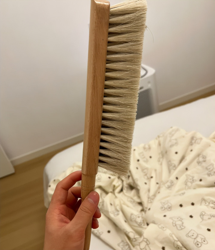 它的刷毛很柔软,轻轻一扫,就可以把床上的灰尘、毛发扫干净,而且刷毛很绵密,扫得巨干净。